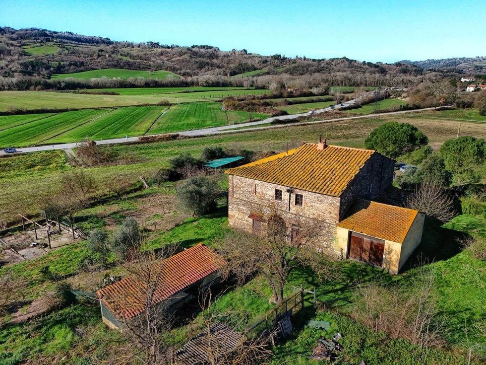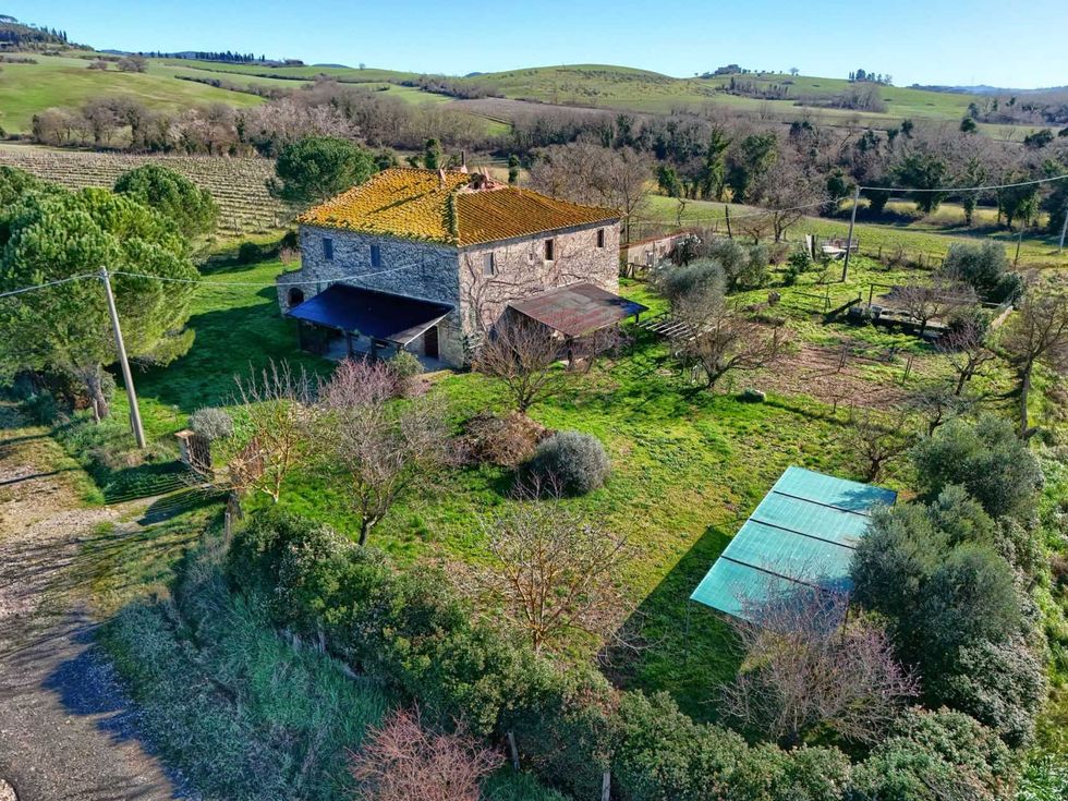 Casale toscano panoramico di 520 mq tra Volterra e il mare con 1 ettaro di terrenoNel cuore delle colline toscane, in una posizione dominante tra Volterra e la costa, si trova questo affascinante casale di circa 520 mq, immerso in un contesto naturale autentico e di grande suggestione.La proprietà conserva il carattere originario dell’architettura rurale toscana, con elementi tipici come pietra a vista, travi in legno e ambienti ampi e luminosi che trasmettono un’atmosfera calda e accogliente.L’edificio si sviluppa su più livelli e comprende:un ampio appartamento al piano primoun livello superiore mansardatodiversi locali al piano terra attualmente ad uso magazzino, facilmente trasformabili in spazi abitativi o funzionaliLa struttura si presenta solida e ben mantenuta, pur offrendo interessanti opportunità di personalizzazione e valorizzazione.Grazie alle dimensioni generose e alla distribuzione degli spazi, il casale si presta a diverse soluzioni:residenza privata per più nuclei familiaristruttura ricettiva di charme (agriturismo, B&B, casa vacanze)sviluppo di un progetto agricolo, anche in combinazione con vigneti confinanti acquistabili separatamenteLa proprietà è circondata da circa 10.000 mq di terreno tra giardino e area agricola, con possibilità di ampliamento. Completano la proprietà pozzo privato, utenze attive e comodo accesso da strada asfaltata.Una soluzione ideale per chi desidera vivere o sviluppare un progetto nel cuore autentico della Toscana, tra natura, privacy e panorami aperti.