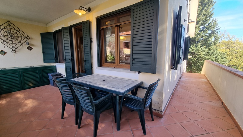 ESCLUSIVA TOSCANA DOC!!!! All’interno di caratteristica zona residenziale con piscina e ampio parco condominiale, proponiamo un delizioso trilocale al piano primo, ideale per chi cerca tranquillità e comfort. All’appartamento si accede da un piccolo giardino privato, perfetto per accogliere gli ospiti ed avviarsi all'alloggio.La zona giorno è ampia, moderna e particolarmente luminosa grazie alle grandi aperture che conducono alla splendida terrazza con vista aperta, ideale per cene all’aperto o momenti di relax. La zona notte comprende una camera matrimoniale accogliente e una cameretta funzionale, adatta a ospiti, bambini o come studio.Una soluzione completa, curata con accessori funzionali ed infissi di pregio ed inserita in un contesto verde e riservato, perfetto per vivere tutto l’anno o come casa vacanza.
